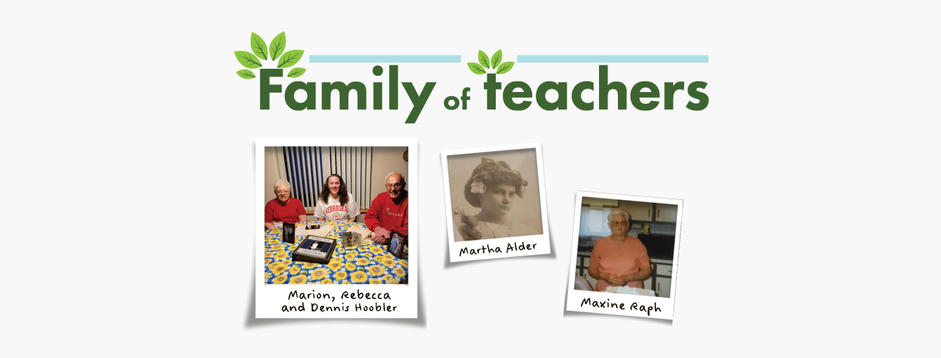 The family’s teaching roots stretch back even further. Rebecca’s grandmother Maxine, great-grandmother Martha Alder, great-aunt Elva Ralls and cousin Conda Hoobler all taught in rural Nebraska schools.